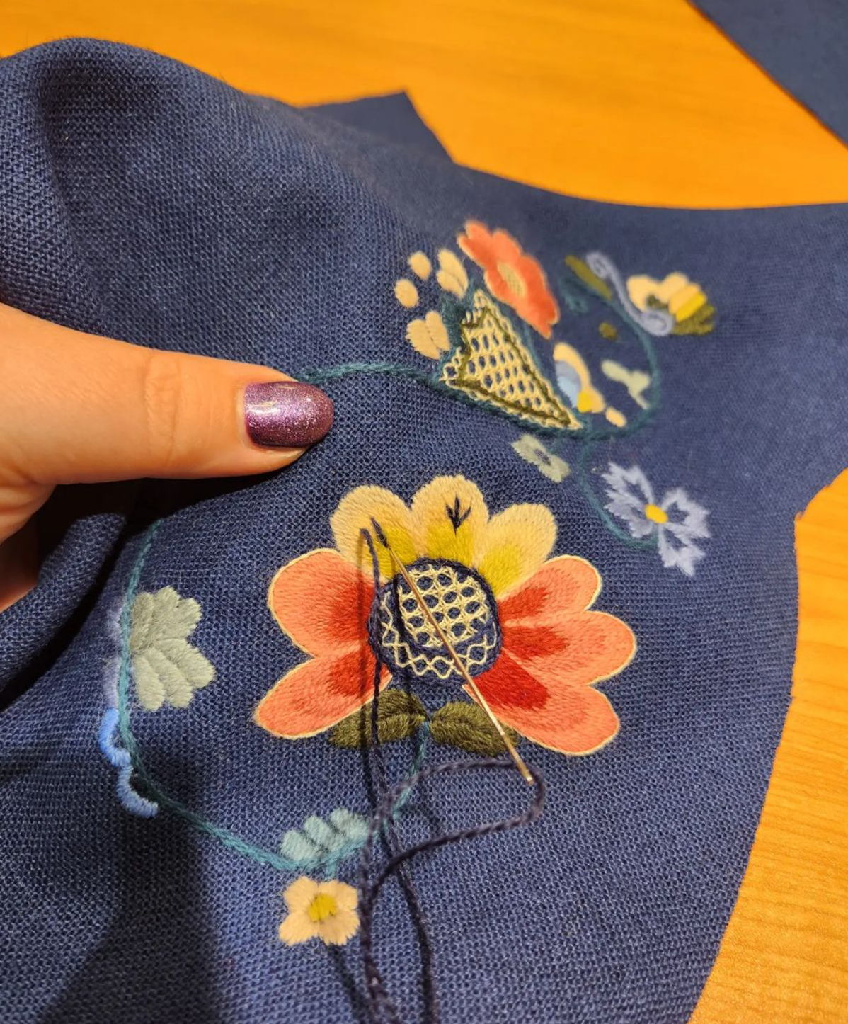 Håndbrodert med garn fra Rauma Ullvarefabrikk.