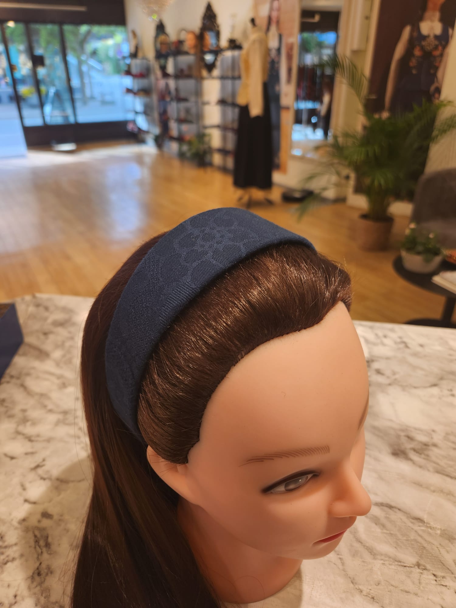 Håndlaget hårbøyle til Nordlandsbunad laget av samme stoff som cape.