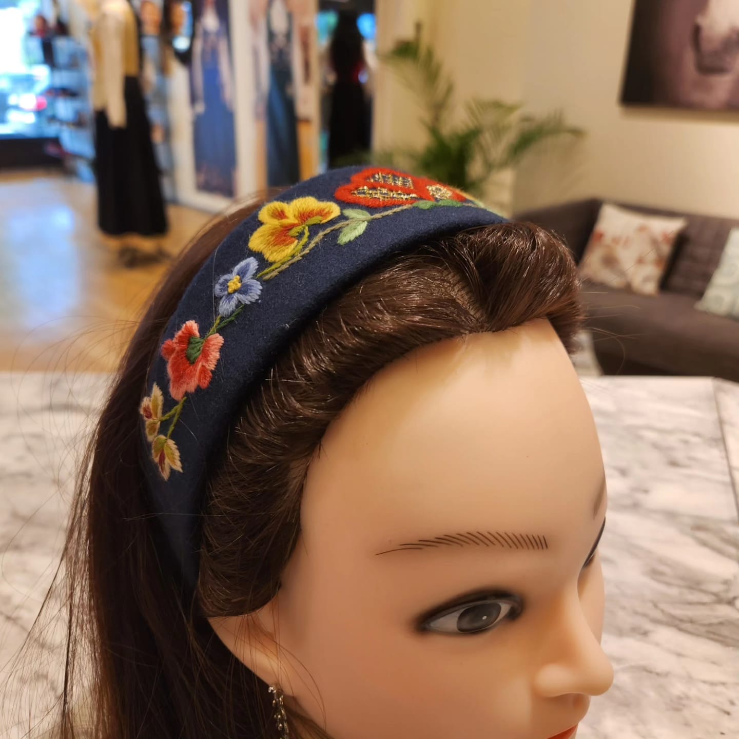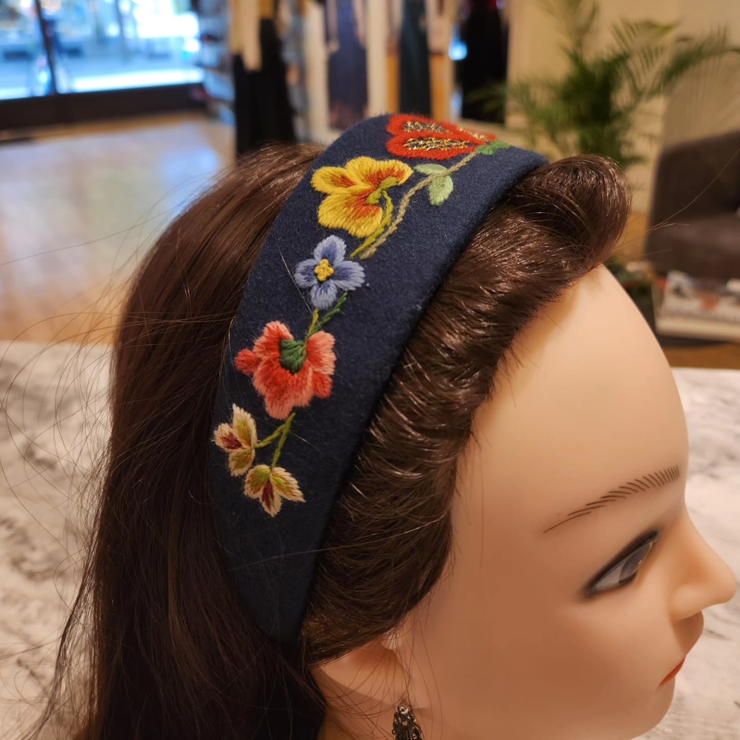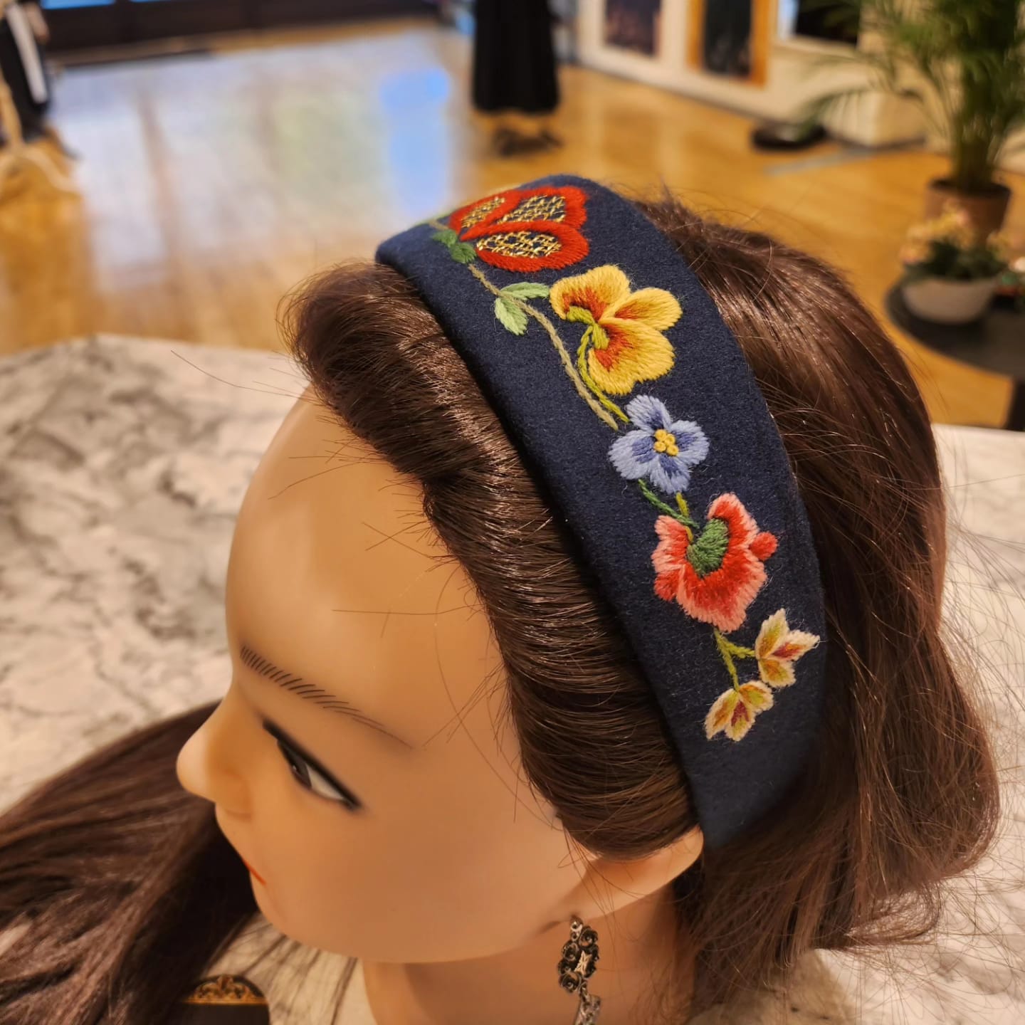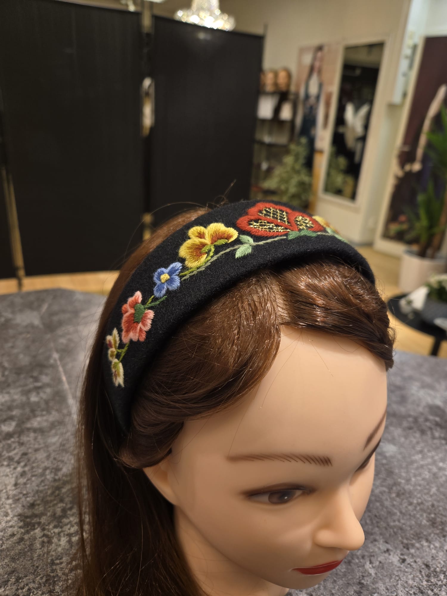Håndbrodert hårbøyle til Gudbrandsdalsbunad.