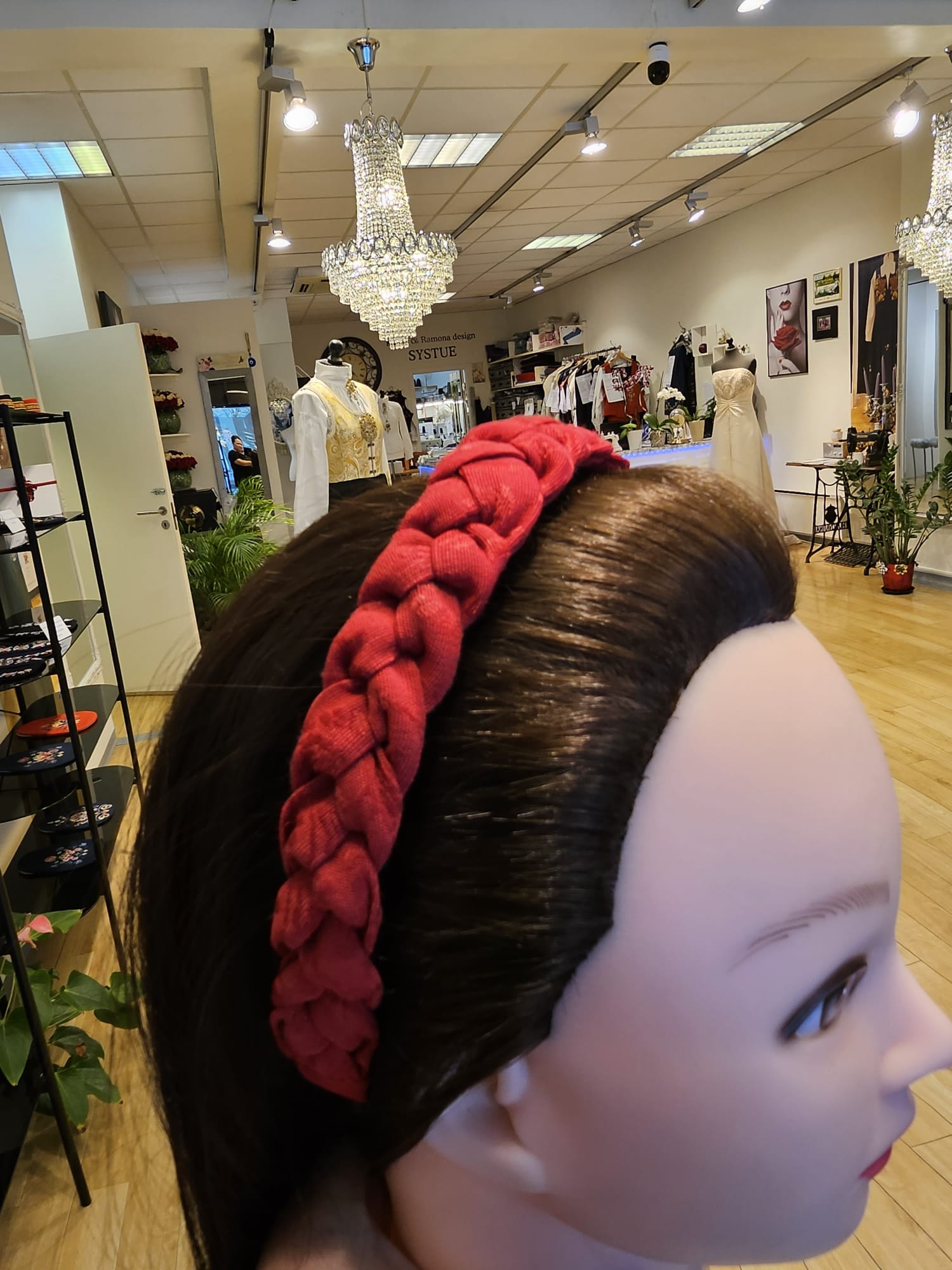 Hårbøyle - Nordmørsbunad (Plommerød fuglestoff vest)