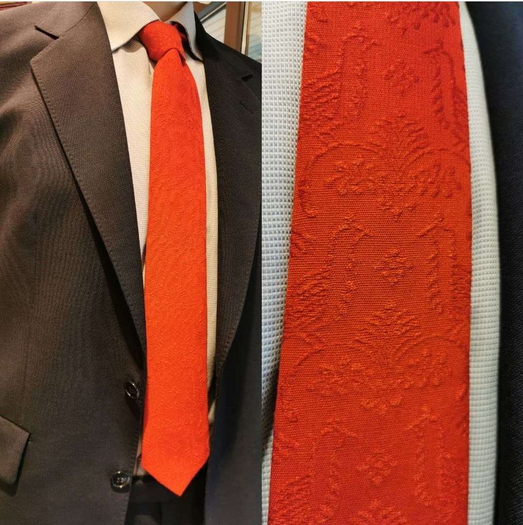 Slips fra samme stoff som rød fuglevest fra Krivi Vev.