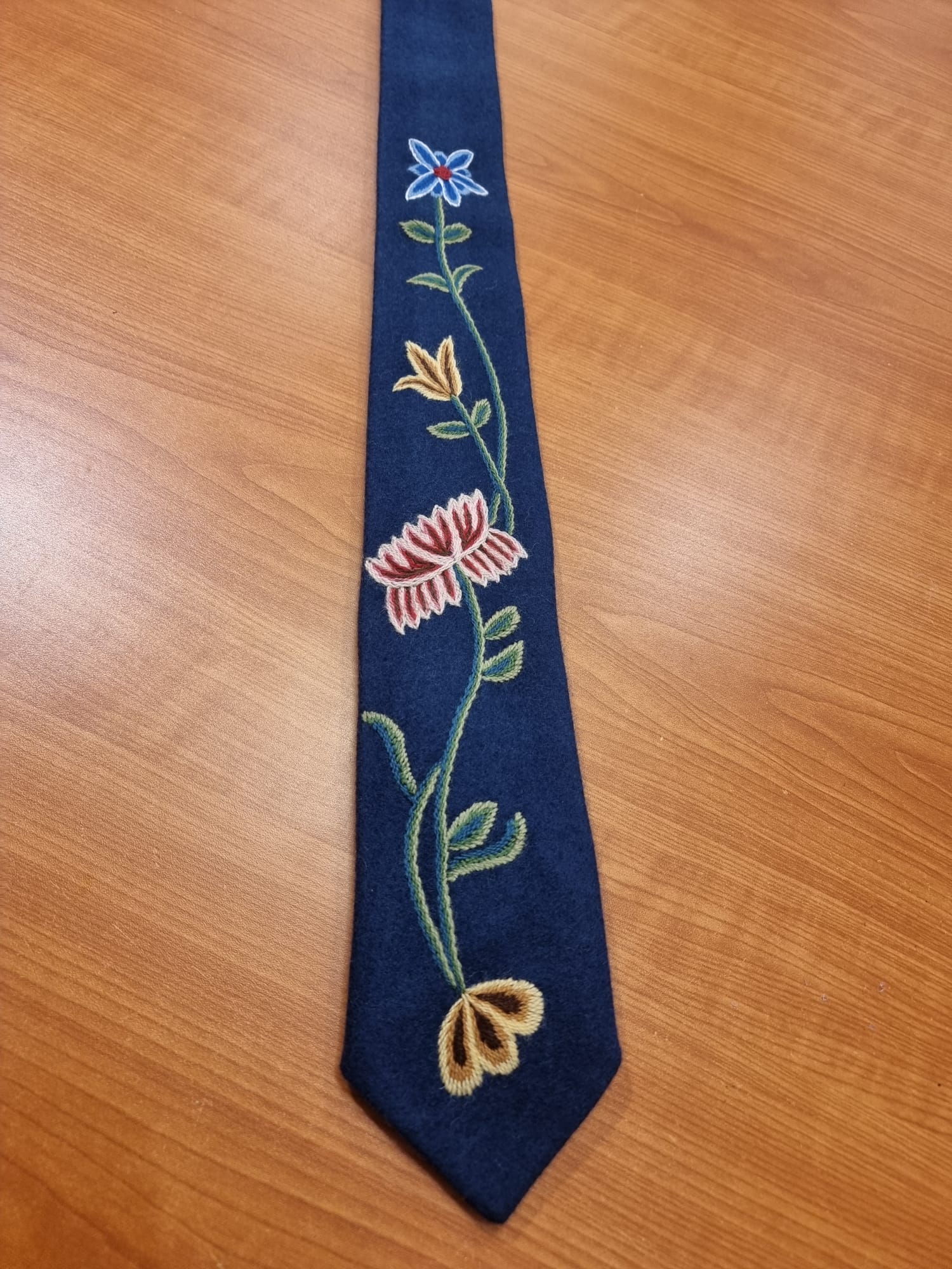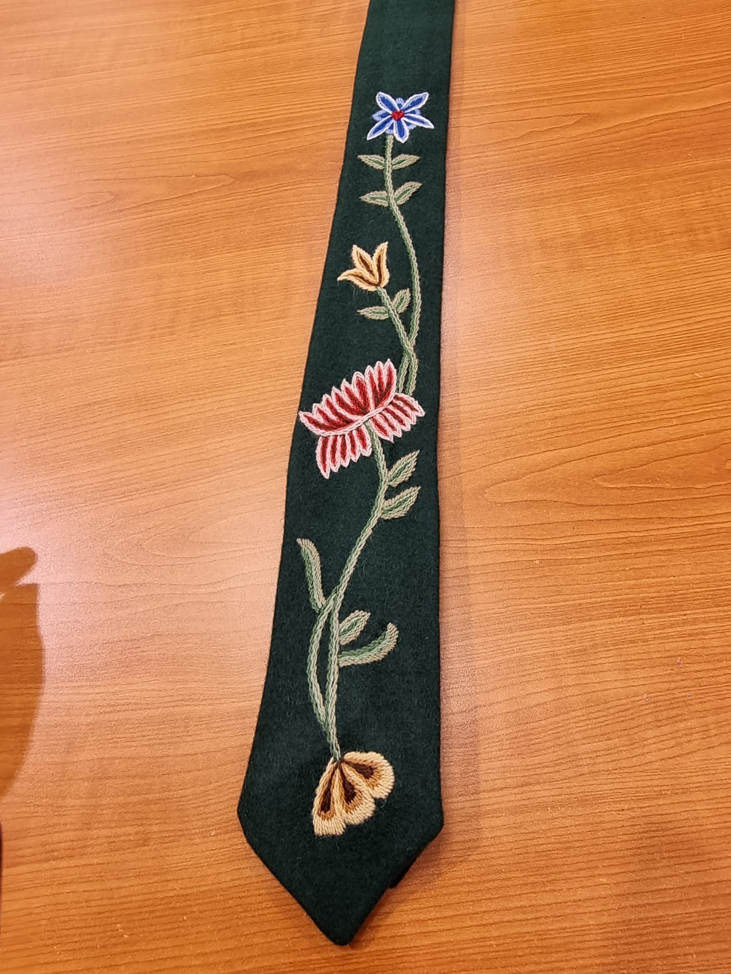 Håndbrødert slips med samme mønster som Nordlandsbunad.